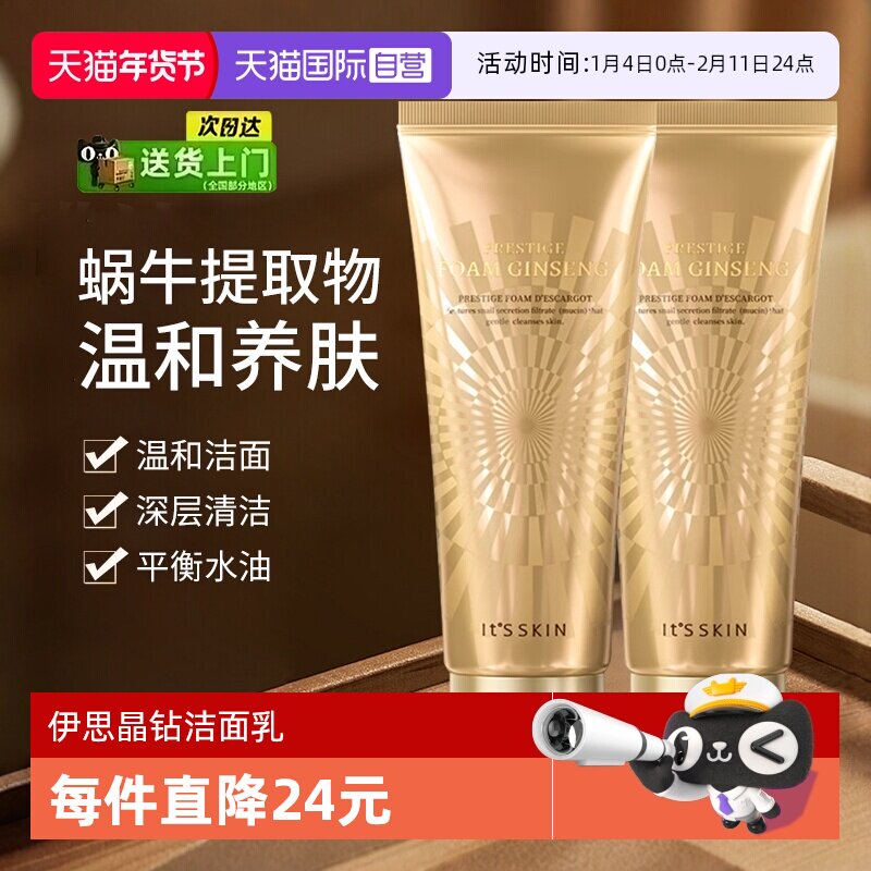 【自营】it's skin伊思晶钻蜗牛洗面奶150ml温和清洁保湿洁面2支