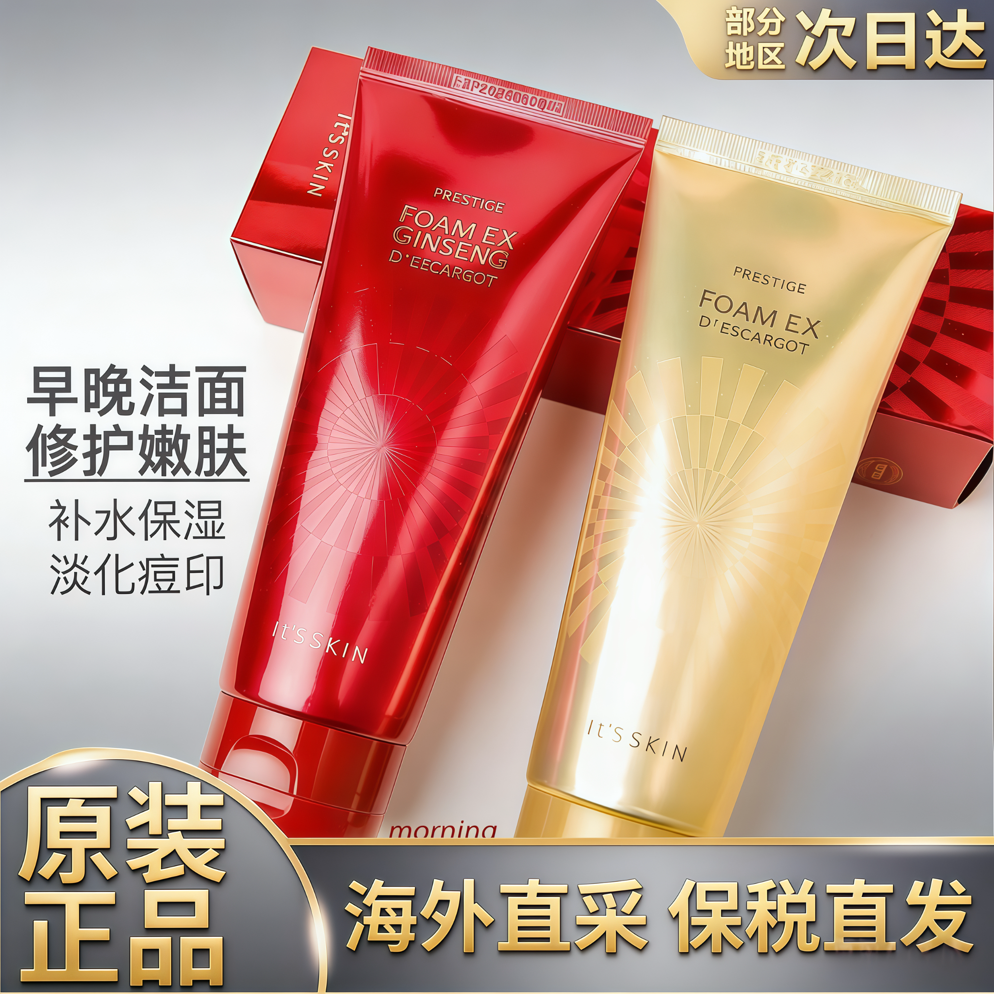 韩国it's skin伊思红参2x晶钻蜗牛洗面奶温和清洁修护洁面乳隔离