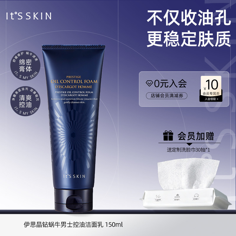 itsskin伊思晶钻蜗牛男士洗面奶深层清洁温和控油清爽洁面乳150ml
