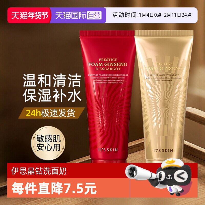 韩国it's skin伊思红参晶钻蜗牛洗面奶深层清洁毛孔滋润修护敏感
