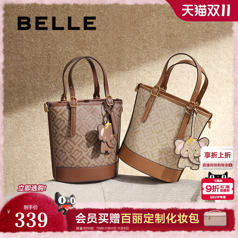 百丽包包女老花小象桶复古通勤单肩斜挎手提手拎水桶包X7233AX5