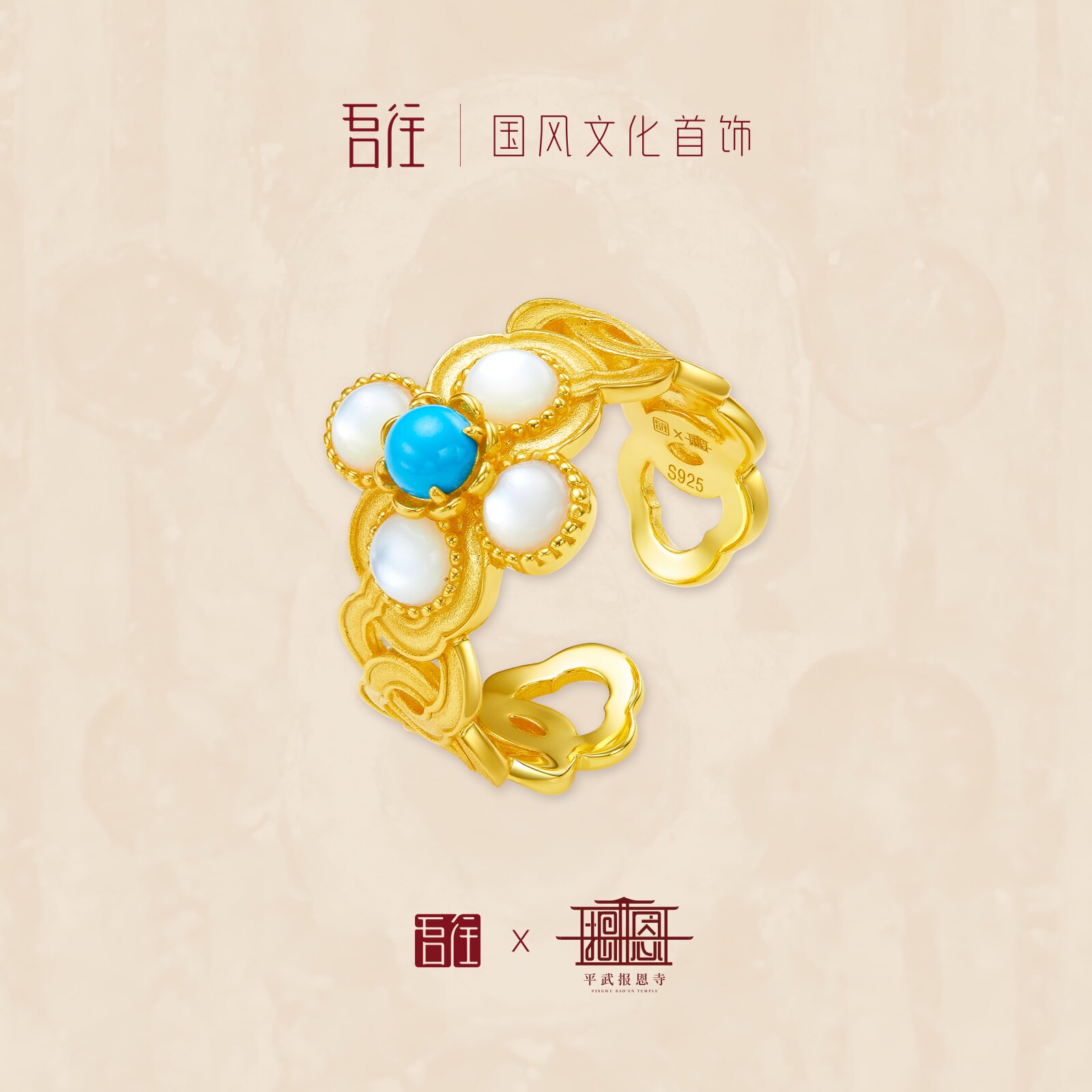 吾往平武报恩寺联名璎珞芳华纯银绿松石开口戒指汉服新中式国风礼
