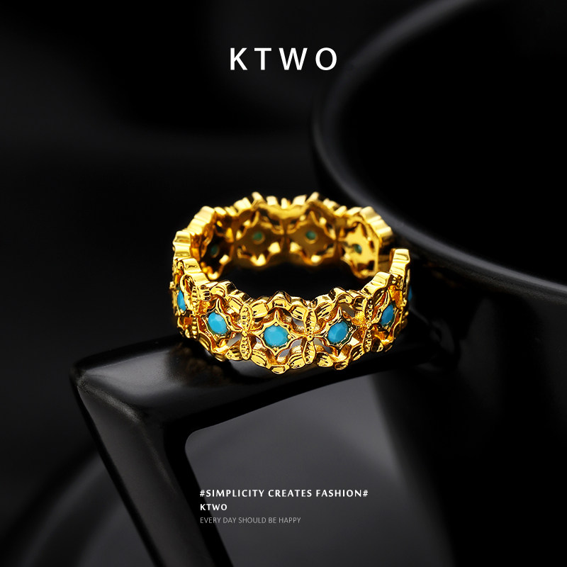 吾往瑟瑟绿松石戒指新中式国风小众高级感简约百搭开口戒金色复古