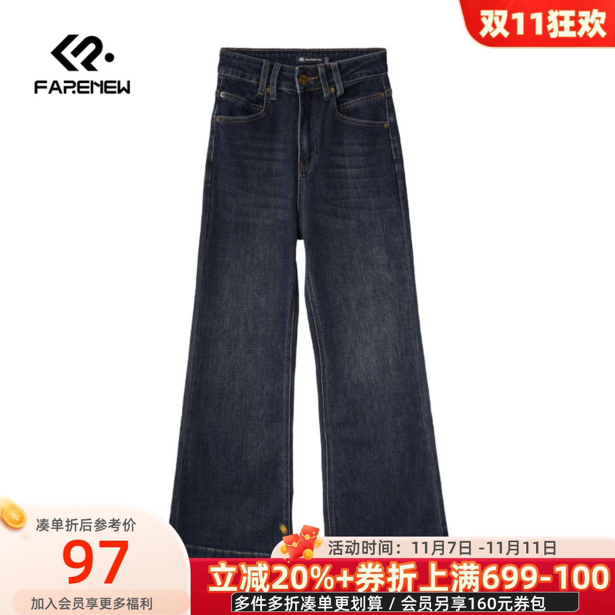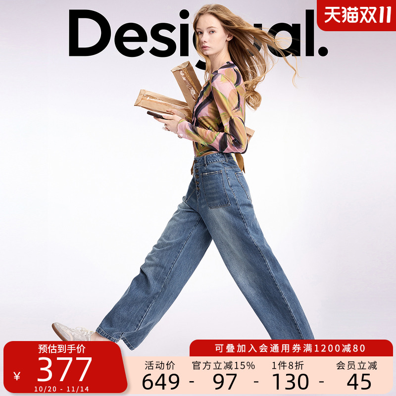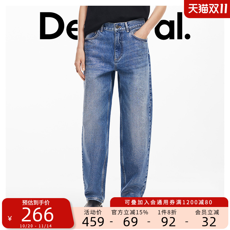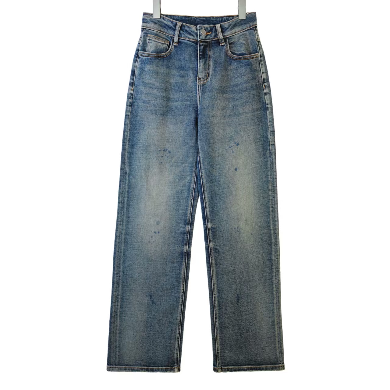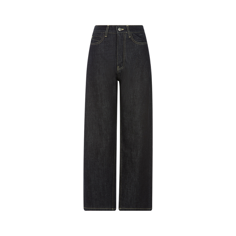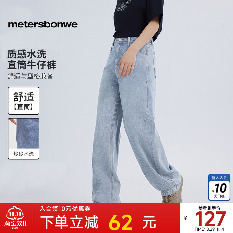 美特斯邦威女装秋冬季新款炒盐水洗舒适设计感直筒女士牛仔裤长裤