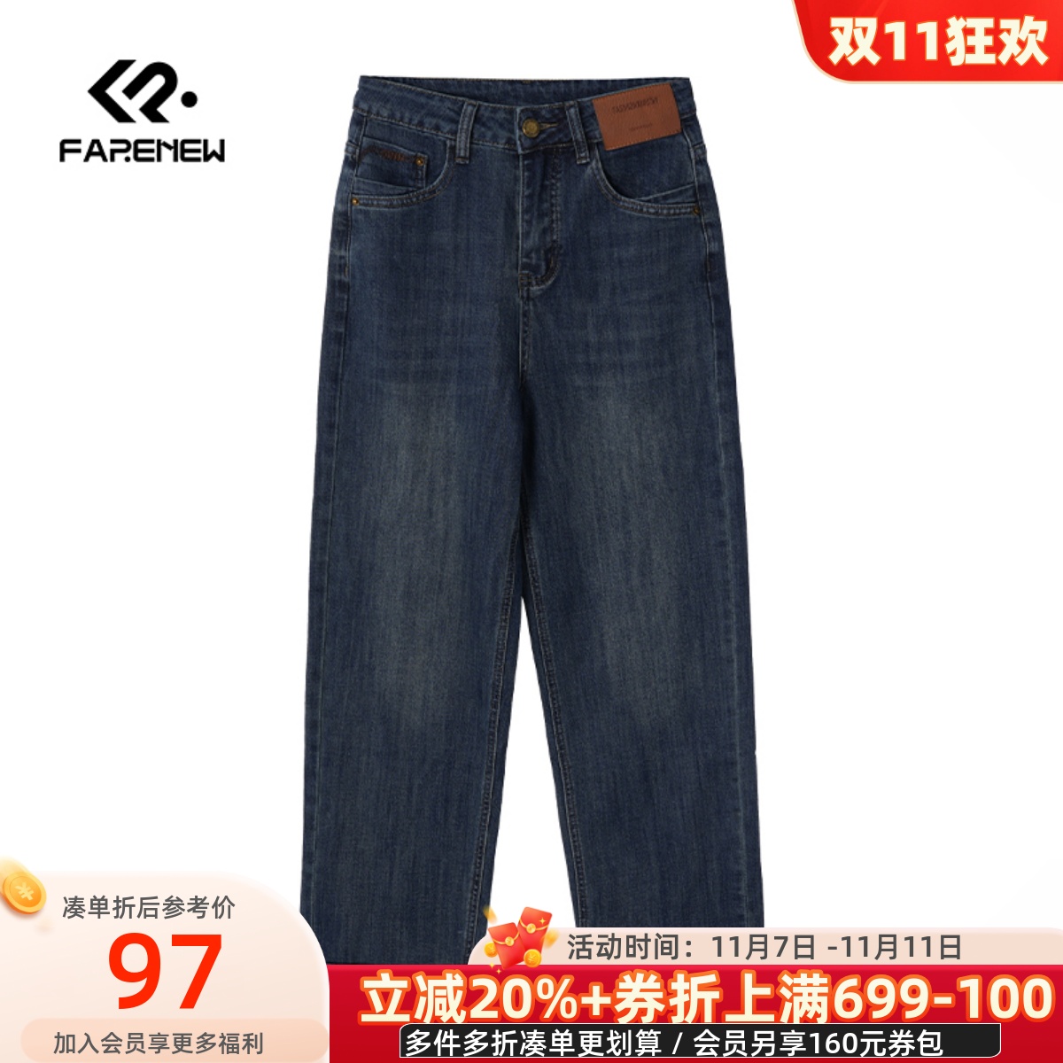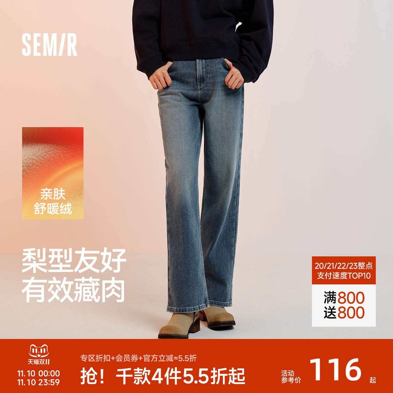 森柔牛仔|森马牛仔裤女磨毛长裤女士潮流秋休闲简约小直筒裤时尚