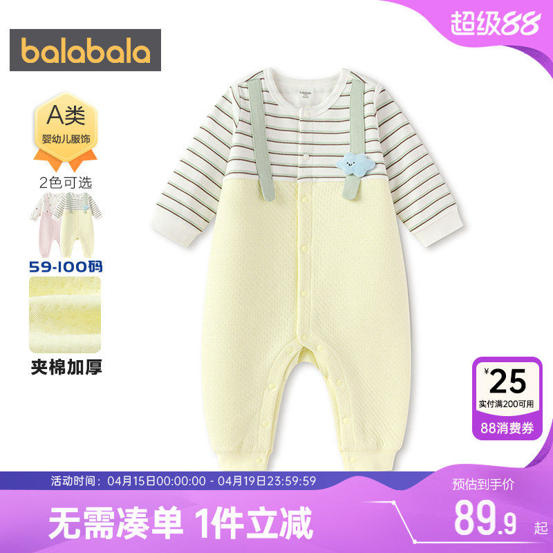 巴拉巴拉balaOne新生儿连体衣男女宝宝衣服哈衣夹棉洋气纯棉柔软