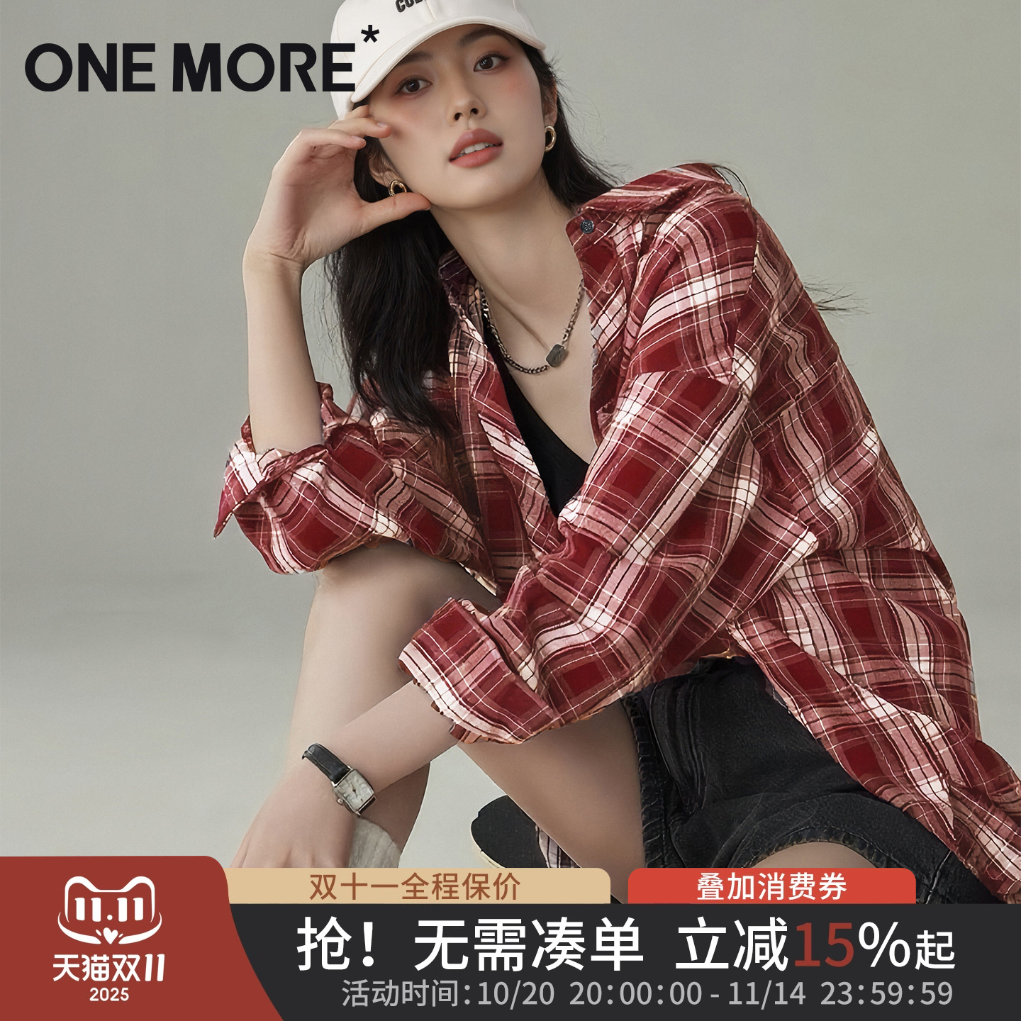 one more红色格子衬衫女秋季2025新款女士复古外套衬衣外搭开衫Y