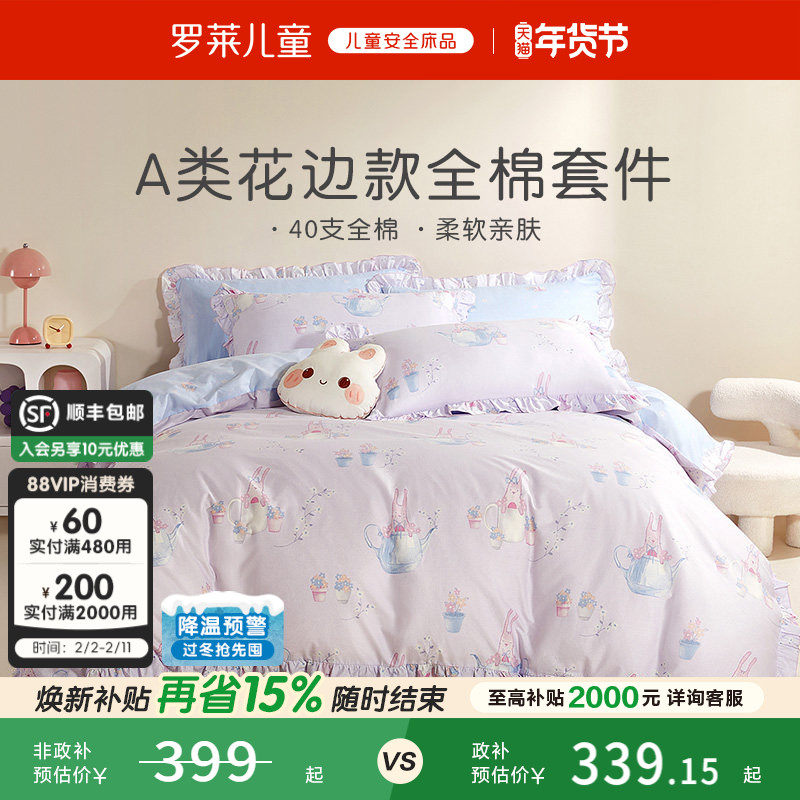 罗莱儿童A类小兔子纯棉全棉四件套女孩公主风被套宿舍床单三件套