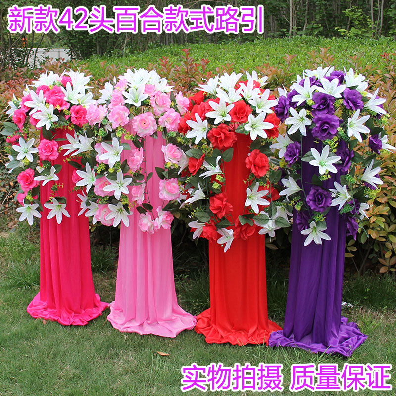 新款路引迎宾绢花引路开业花篮花架子注水路引花柱婚庆柱拱门路引