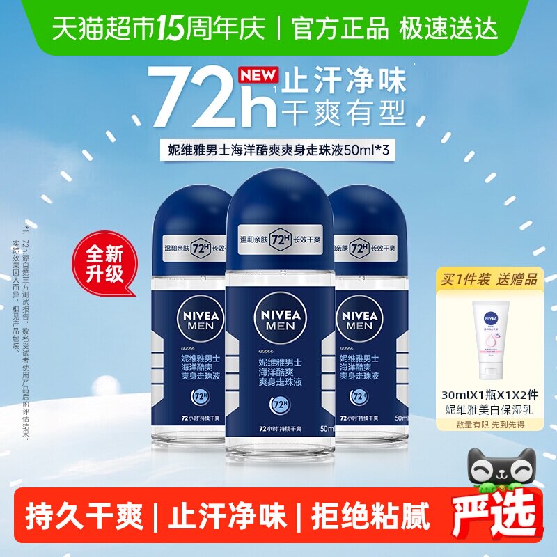 妮维雅止汗露男士专用走珠液香体滚珠腋下除臭干爽去异味官方正品