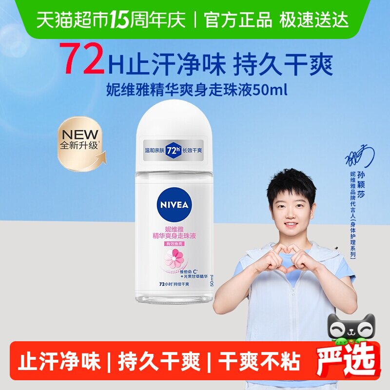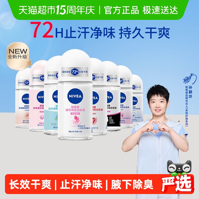 【下拉享优惠】孙颖莎同款妮维雅精华爽身腋下除臭走珠液持久止汗