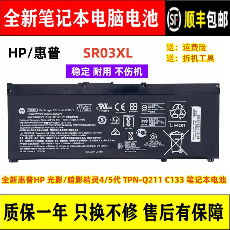 全新惠普HP 光影/暗影精灵4/5代 SR03XL TPN-Q211 C133笔记本电池