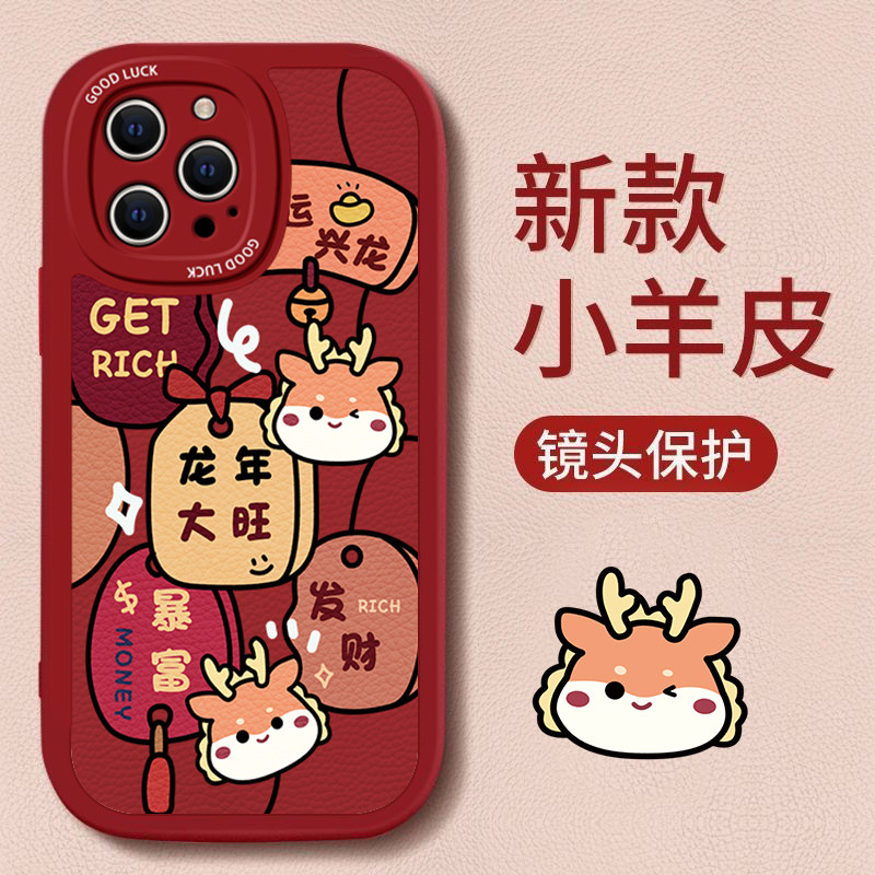 适用苹果14pro手机壳15龙年新款iPhone14喜庆13可爱12mini万事兴龙11红色xsmax可爱78plus男女6s防摔se2024年