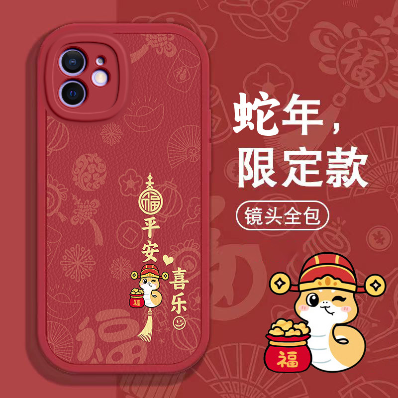 苹果13手机壳4春节5s新年6s红色8 plus过年7男XR女XS全包11 pro MAX本命 iPhone 12蛇年13软14套15潮16款SE