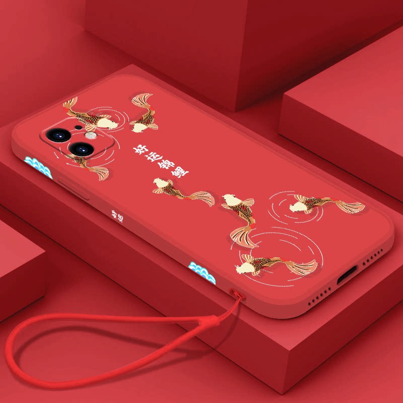 新年适用苹果14手机壳14plus好运锦鲤iPhone13红色12mini兔年11promax喜庆X新xr男xsmax女8p情侣7软se2硅胶6s