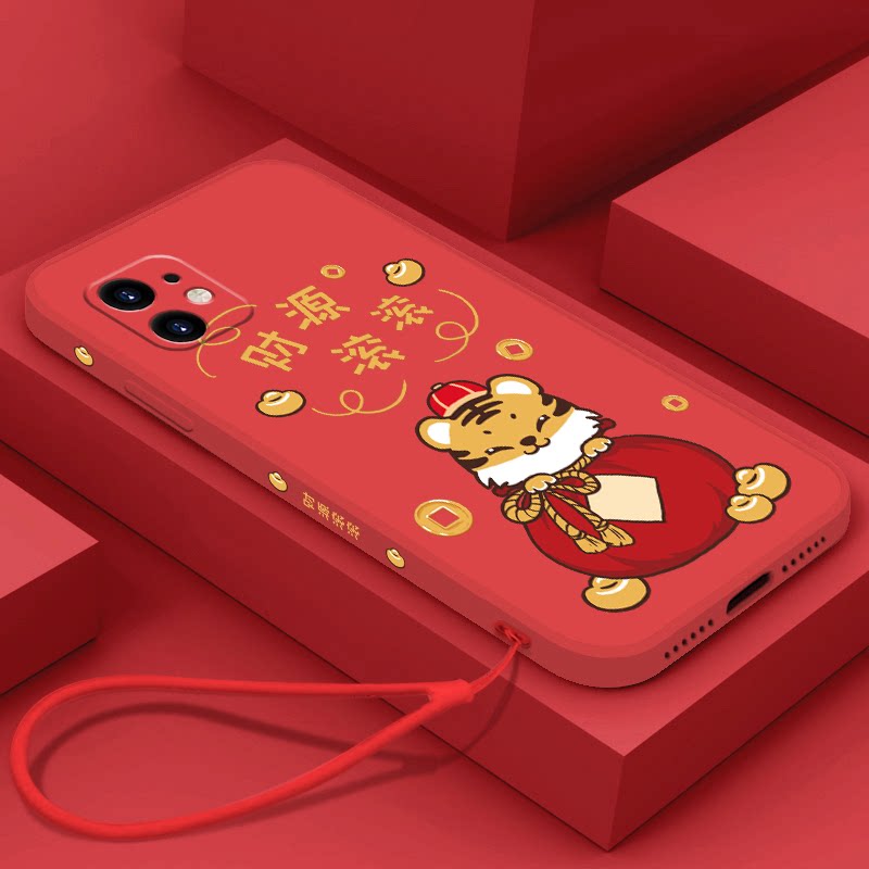 虎年新年款苹果13手机壳iPhone12promax红色苹果11软壳xs液态硅胶xr全包xsmax保护套8plus中国风7plus/se2/6s