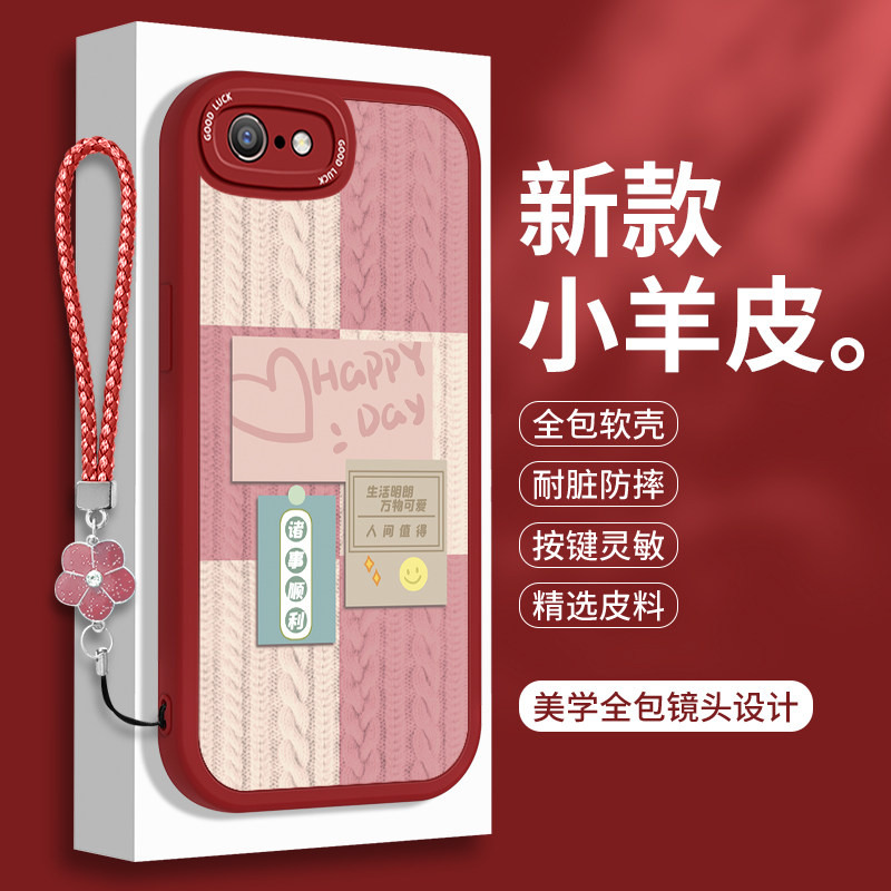 新年款苹果6手机壳iPhone6S小羊皮软壳iPone6plus硅胶splus全包防摔i6小众p带挂绳i6小六了sp保护套ip6红色女