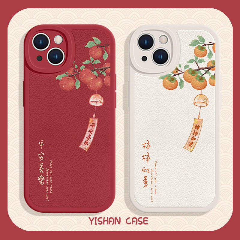 适用苹 果15Promax手机保护壳16新款iPhone14平安喜乐13简约文字12mini柿柿如意11xsmax红色7plus8小羊皮6s全