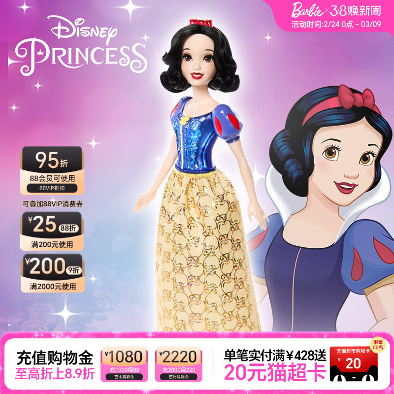 芭比娃娃迪士尼公主闪亮公主经典系列之白雪公主女孩玩具生日礼物
