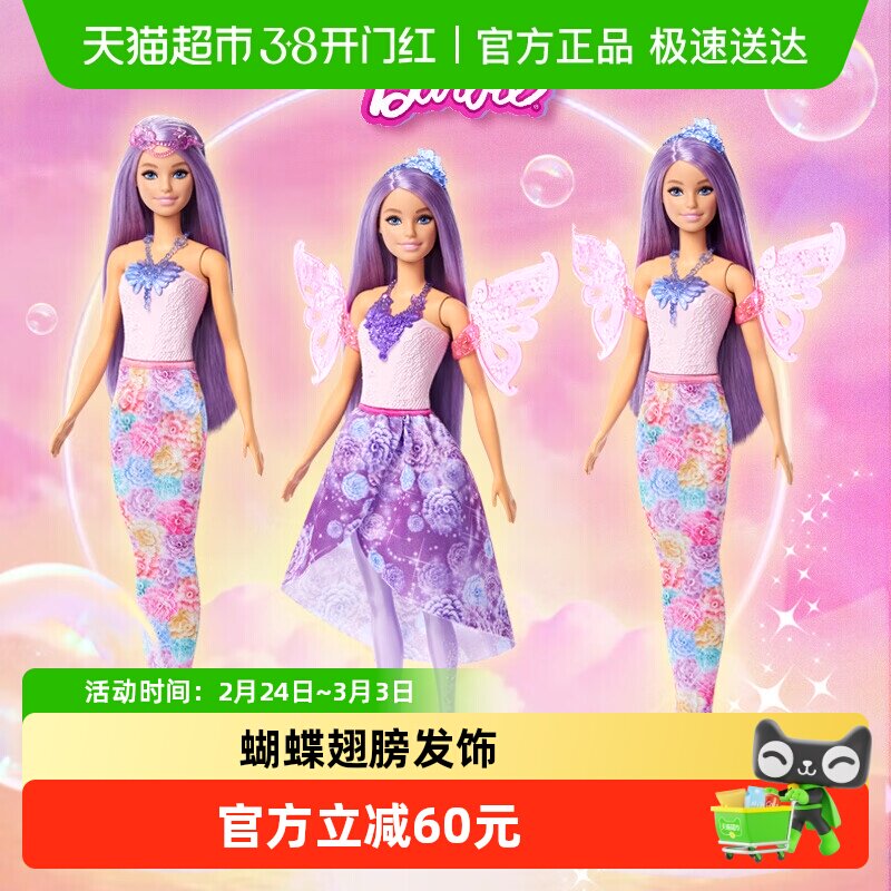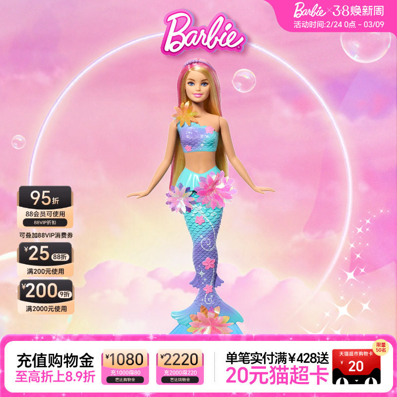 生日礼物芭比娃娃Barbie梦幻花朵美人鱼童话系列女孩穿搭玩具互动