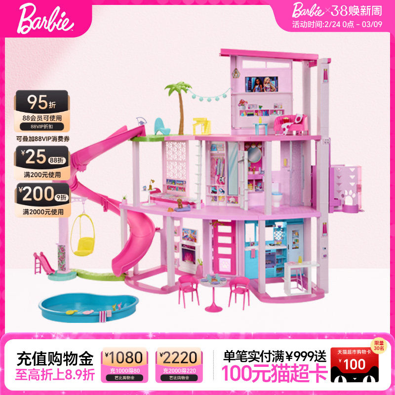 芭比娃娃Barbie梦想豪宅大别墅过家家礼物女孩玩具生日礼物套装