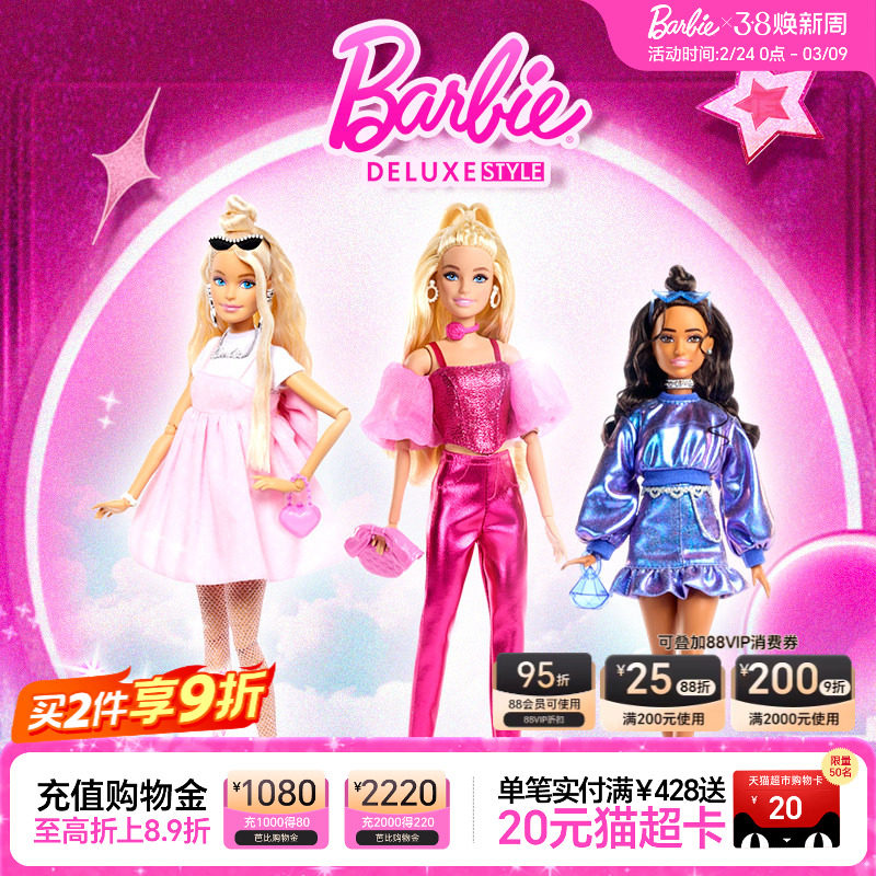Barbie芭比娃娃豪华时尚甜心魅姿多关节可动女孩换装玩具生日礼物