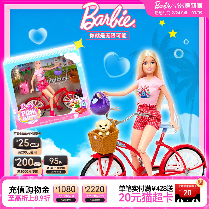 芭比娃娃Barbie之惬意午后骑行玩具套装女童过家家生日礼物送礼