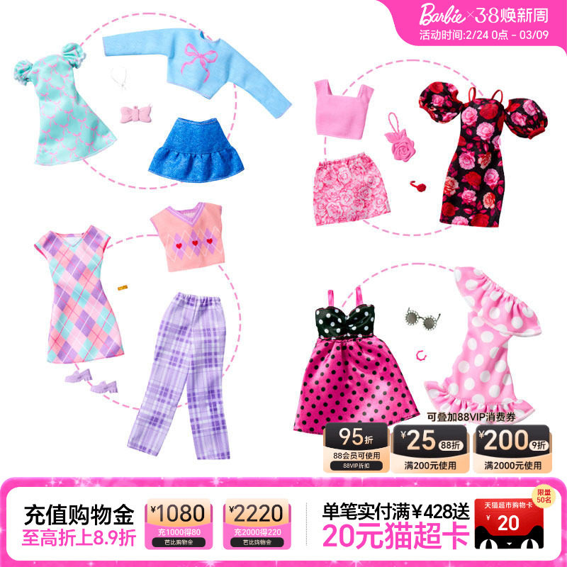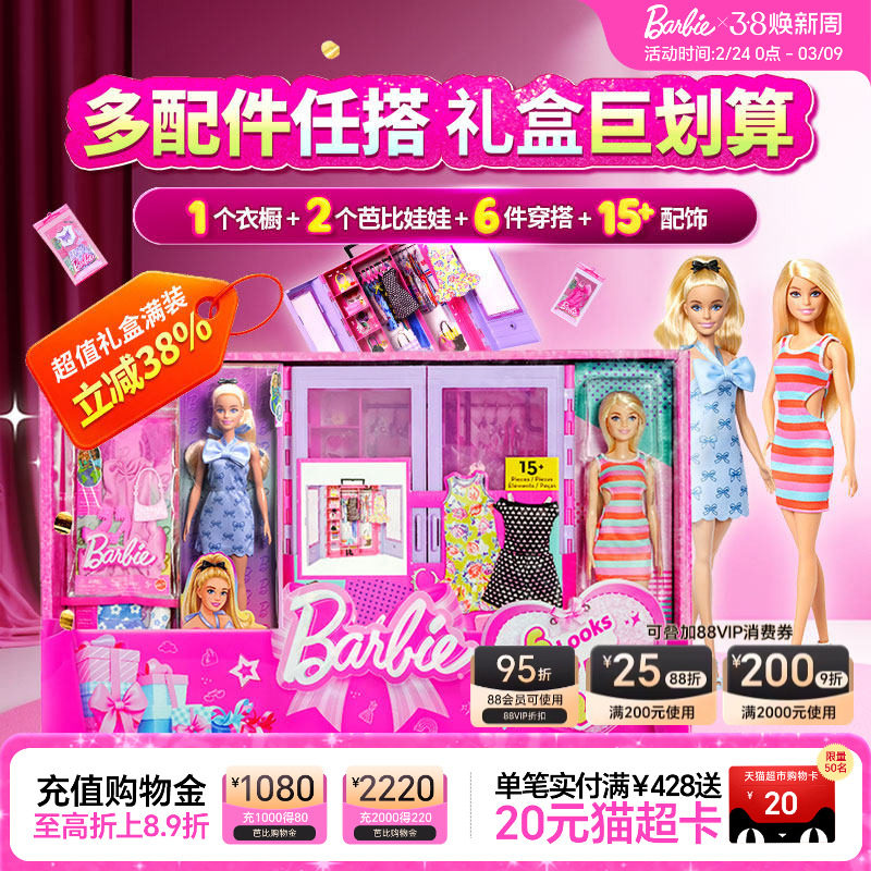 【自营】芭比粉色趣玩梦想衣橱公主换装娃娃搭配女孩玩具生日礼物