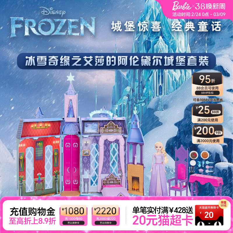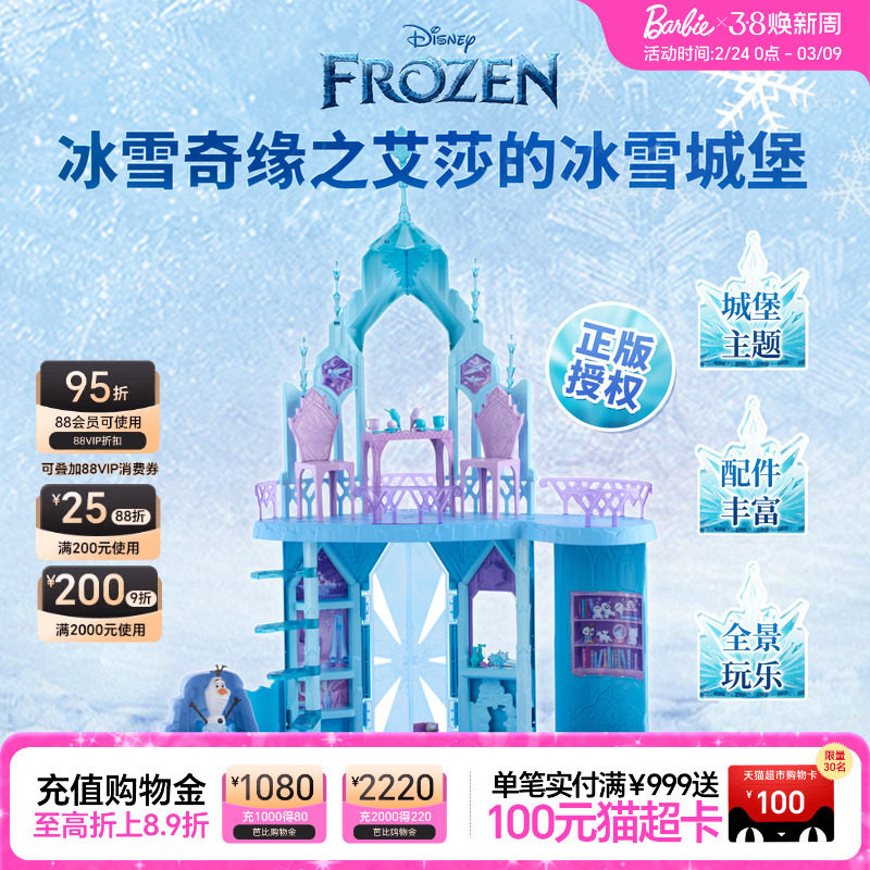 芭比娃娃迪士尼冰雪奇缘之艾莎的冰雪城堡女孩玩具过家家生日送礼