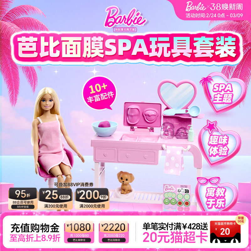 芭比娃娃Barbie面膜SPA益智场景玩具套装女孩过家家生日礼物儿童