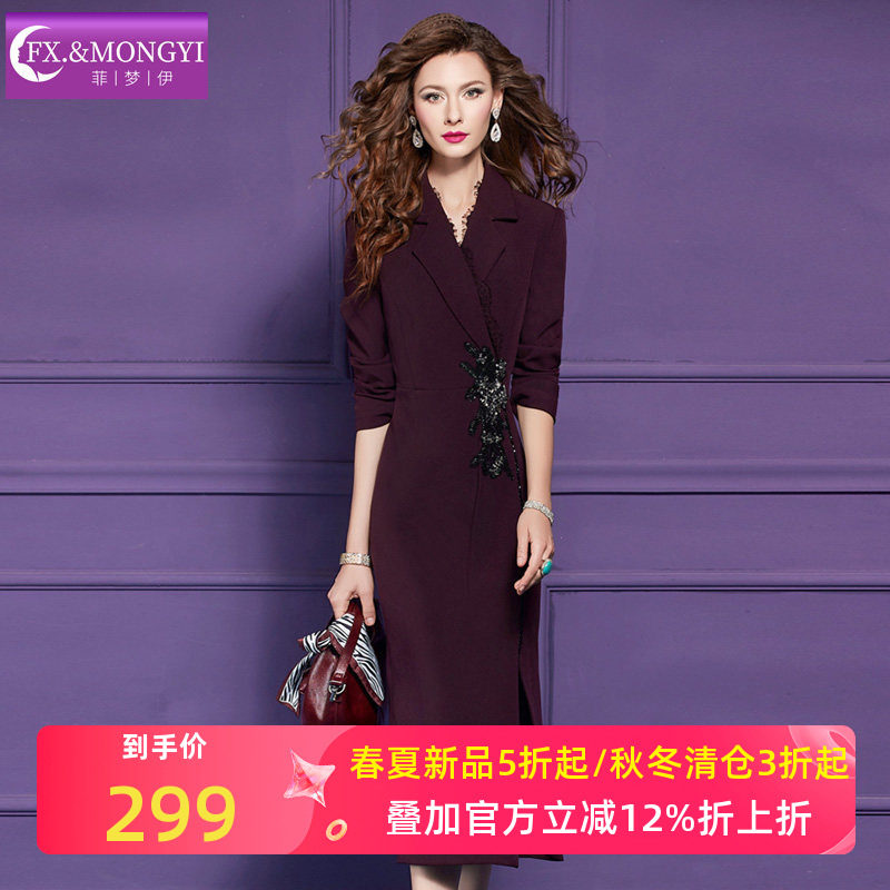 菲梦伊流苏绣花红色西装连衣裙女秋季商务通勤正装假两件职业裙子