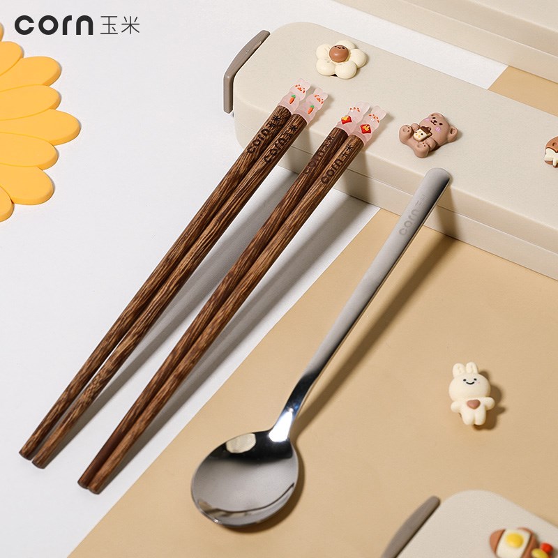 玉米儿童餐具筷子勺子套装空盒小学生上学专用餐具盒一年级收纳盒