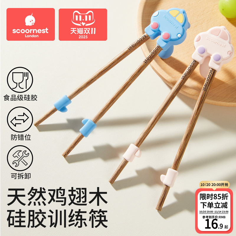 如山儿童筷子训练筷宝宝专用2 3 6岁实木学习筷辅助幼儿练习餐具1