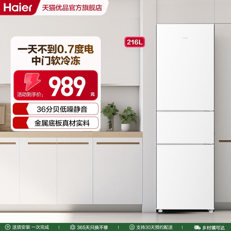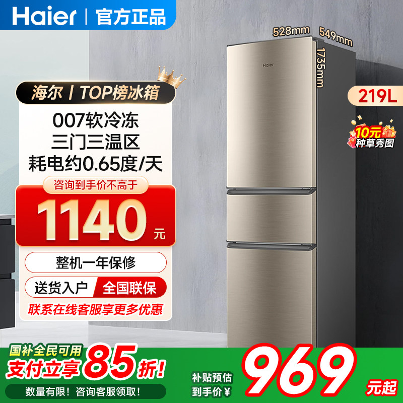 海尔电冰箱三门219L升软冷冻直冷微霜家用小型节能多门官方旗舰店