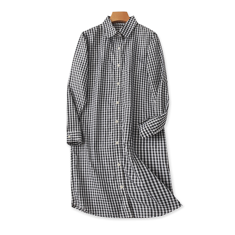棉连衣裙长袖衬衣裙MUJl同款春秋宽松显瘦文艺长款罩衫裙子连身裙