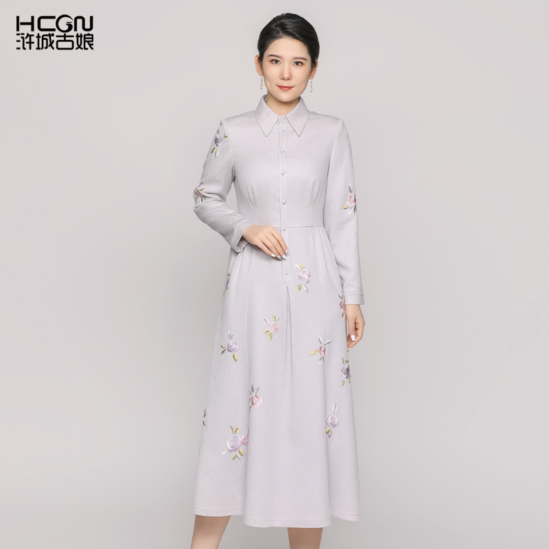 紫涵肌理感提花衬衫连衣裙女秋季新款休闲轻国风长袖中长款网纱裙