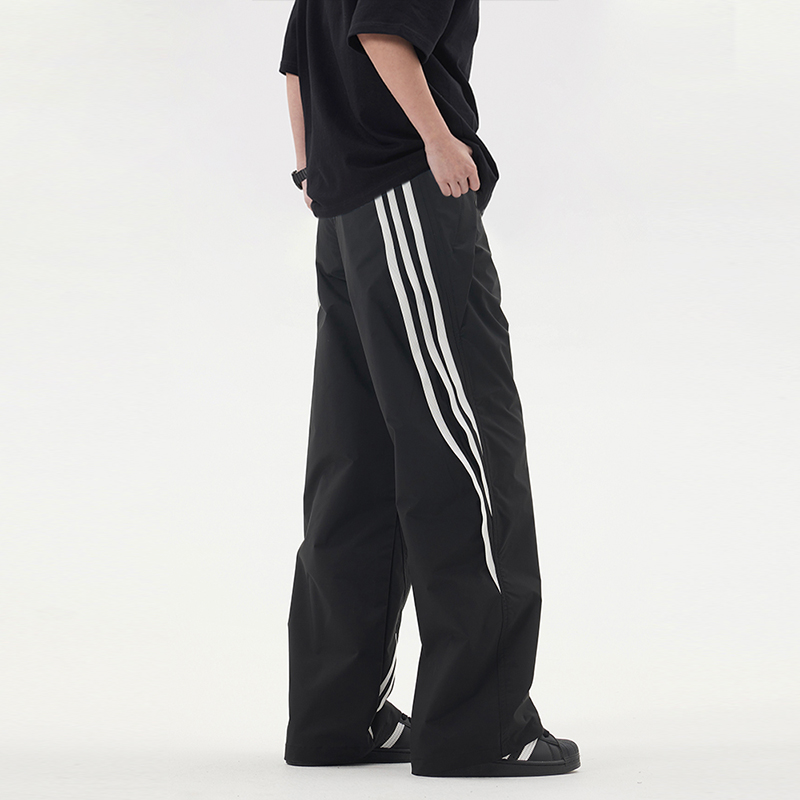 ZLAYCO美式黑色垂坠感休闲裤男女阔腿宽松运动条纹垂坠感冲锋长裤