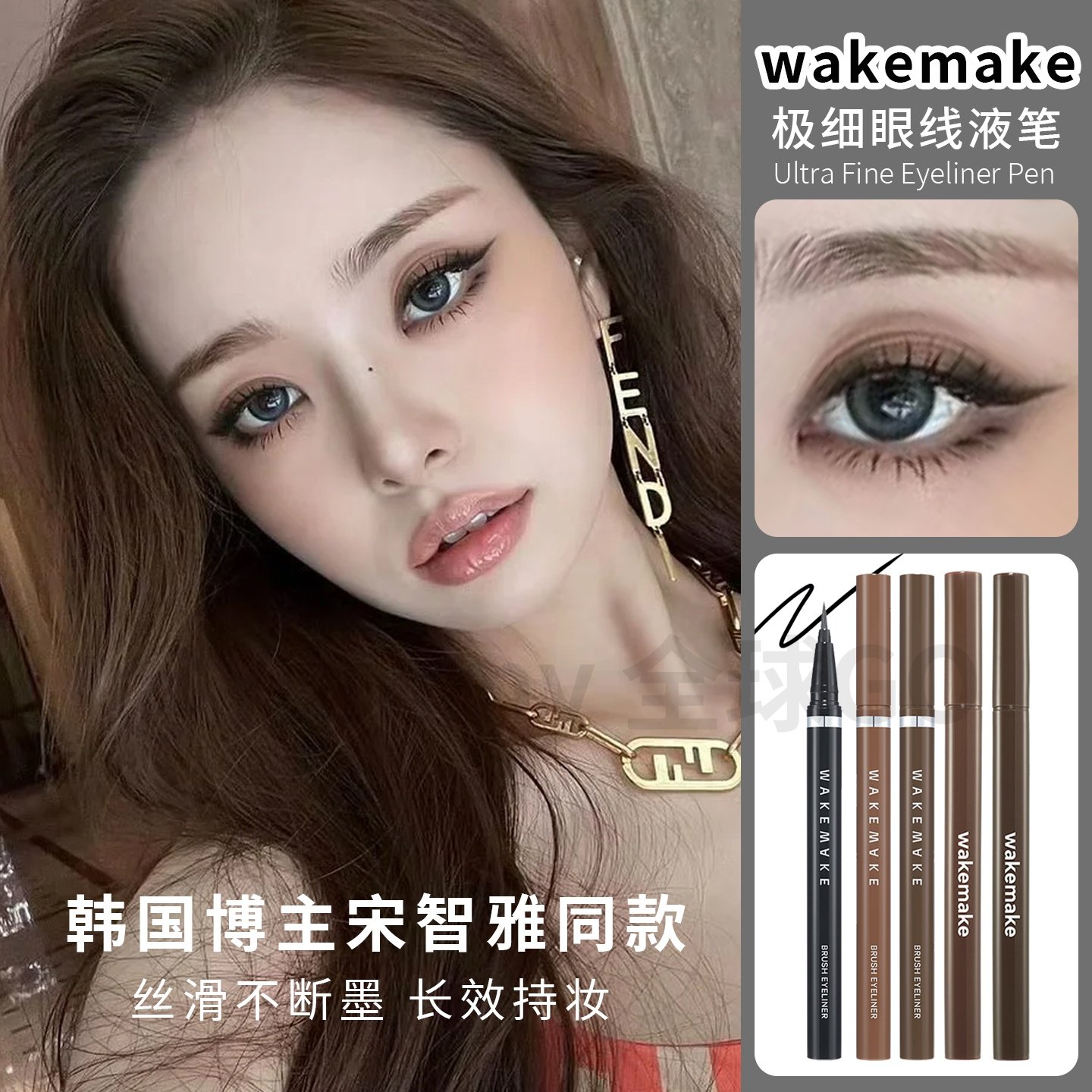 韩国wakemake唯可魅不晕染防水眼线液笔黑色棕色新手小白告别手残
