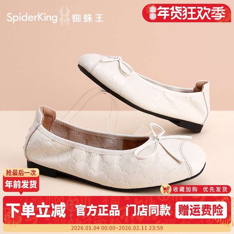 蜘蛛王女鞋2026春季新款羊皮芭蕾风浅口单鞋女平底蝴蝶结舒适百搭