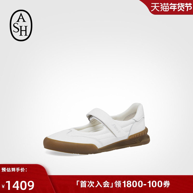 ASH女鞋2025春夏PURE真皮魔术贴浅口单鞋女平底运动玛丽珍休闲鞋
