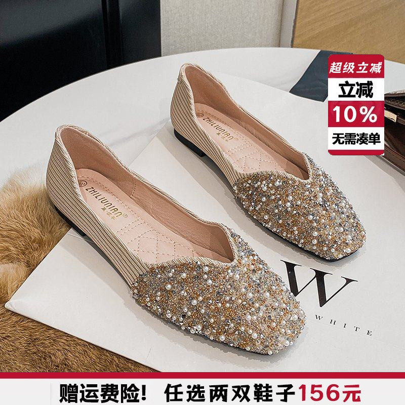 水钻女士浅口单鞋女平底低跟一脚蹬高级感法式气质仙女晚晚鞋婚鞋