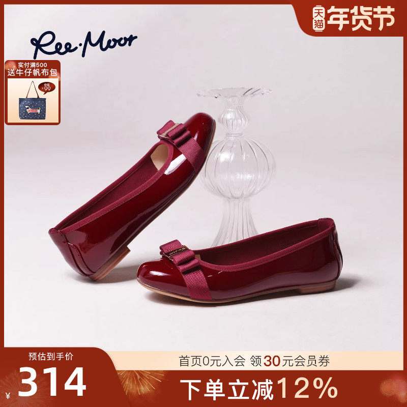 REEMOOR睿慕2026春季新款甜美风蝴蝶结气质浅口单鞋女平底一脚蹬