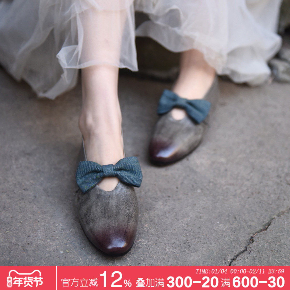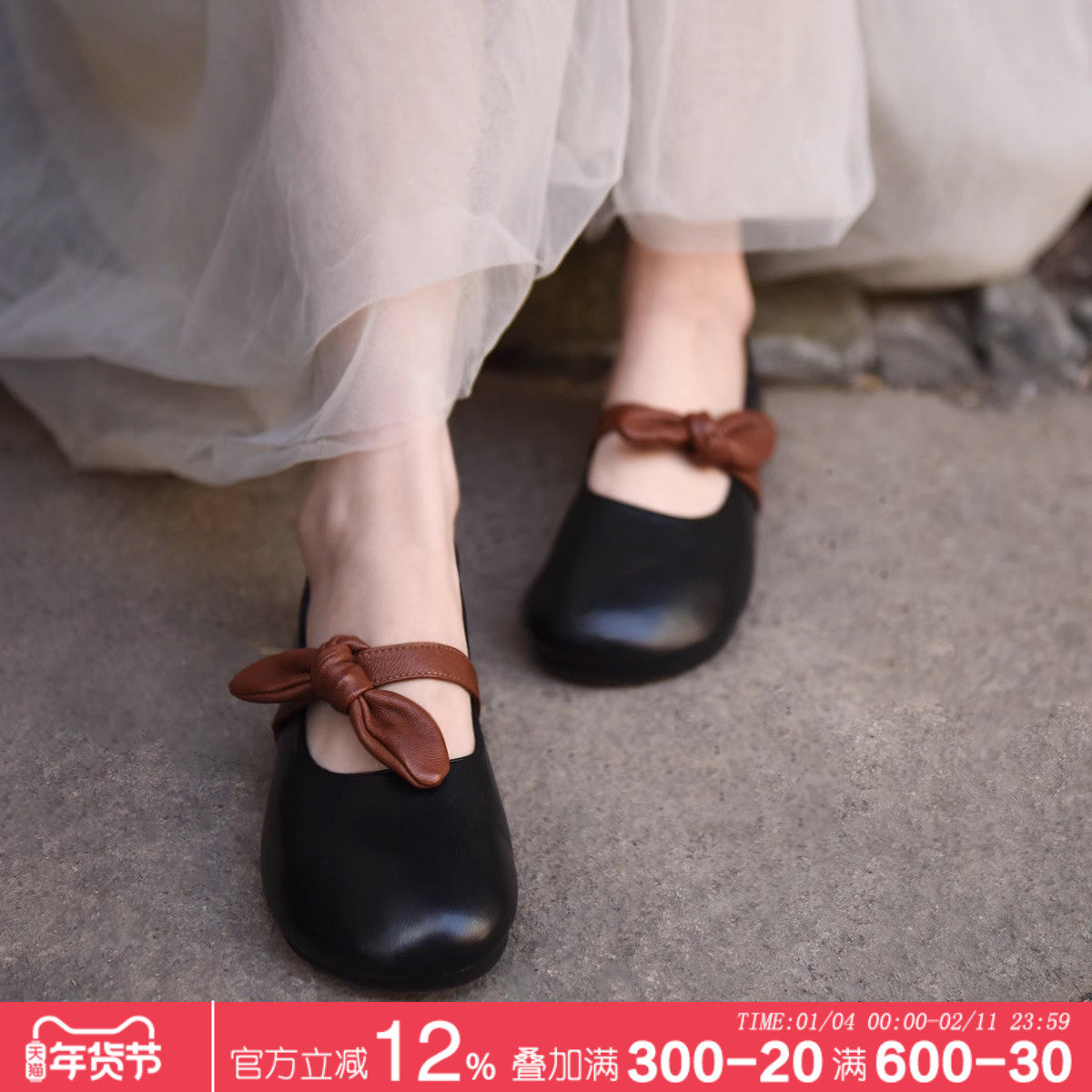 Artmu阿木复古女鞋蝴蝶结浅口单鞋女平底软底奶奶鞋玛丽珍鞋新款