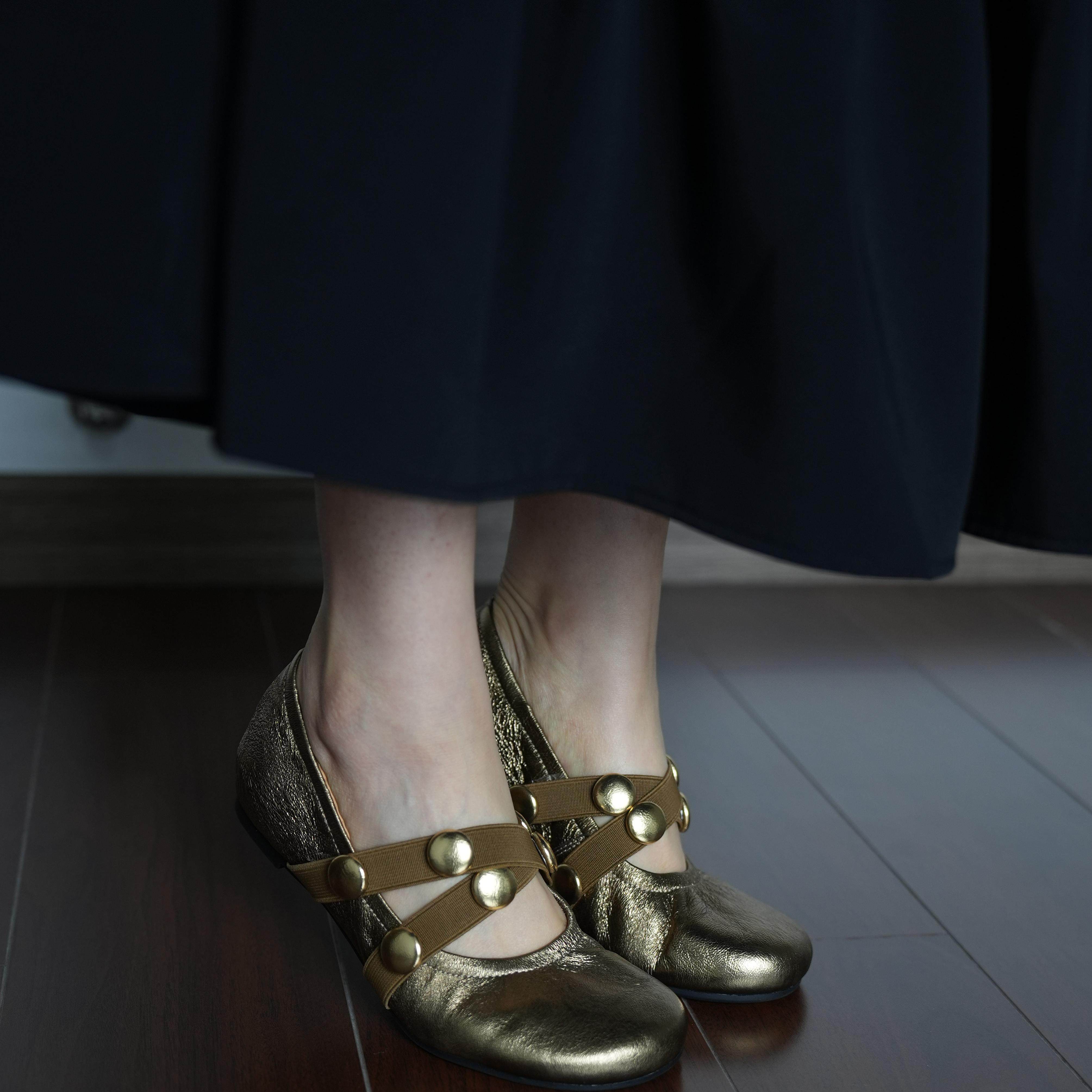Fermina大圆头浅口单鞋女平底软面软底女鞋增高小银鞋金色玛丽珍
