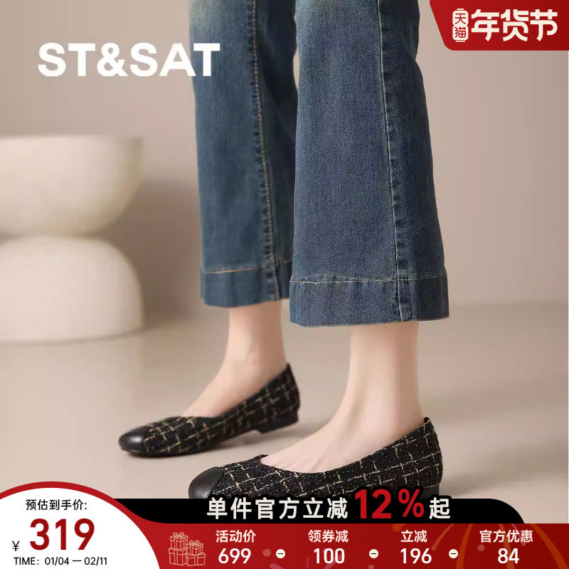 星期六2025秋季新款小香风编织浅口单鞋女平底舒适不累脚通勤鞋