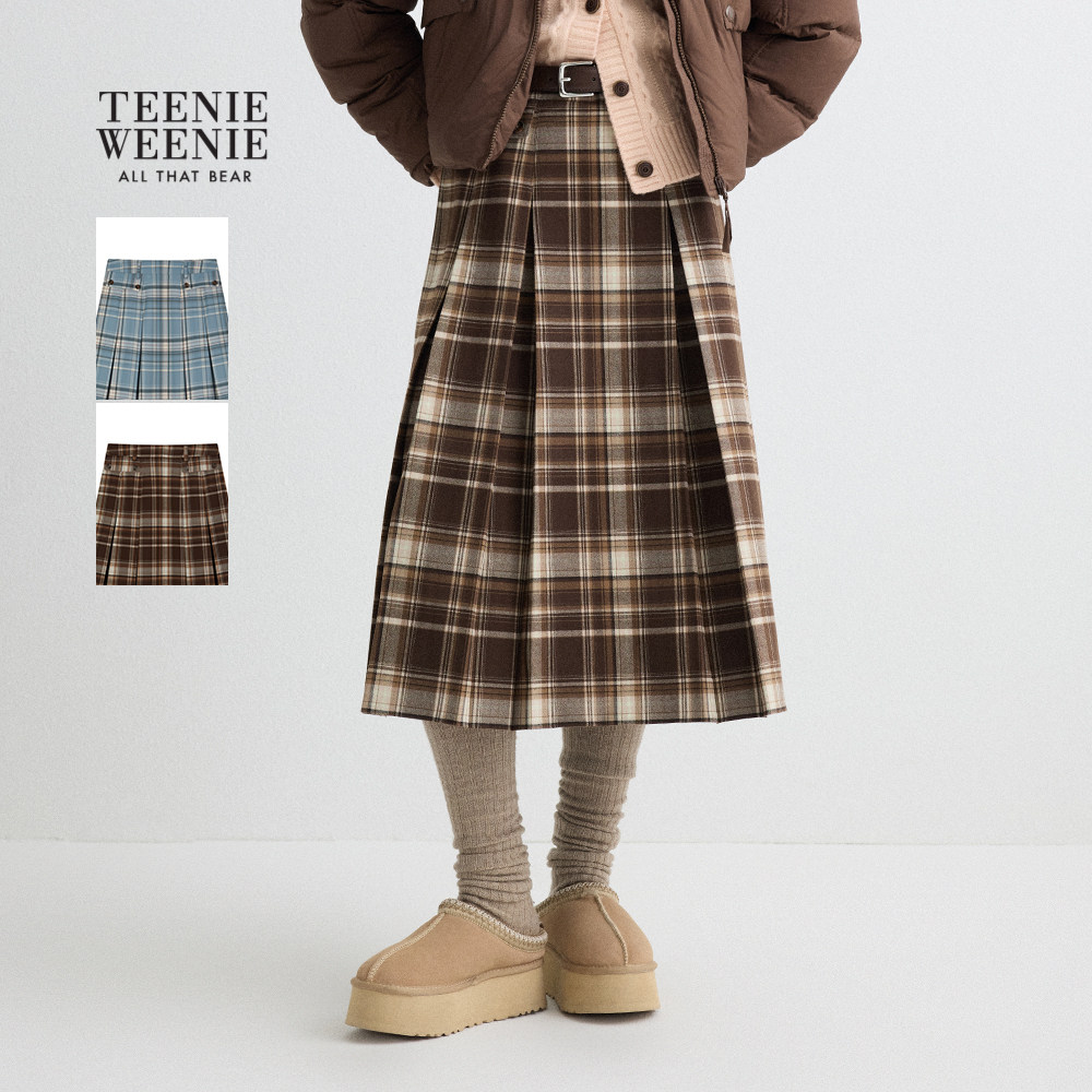 TeenieWeenie小熊女装半身裙2025冬季新款时髦优雅格纹中长百褶裙