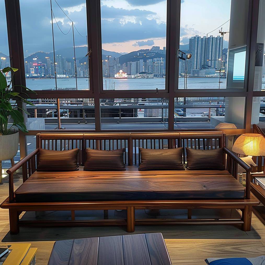 实木新中式禅意现代美学组合宋代宋氏罗汉床沙发胡桃木家具客厅黑