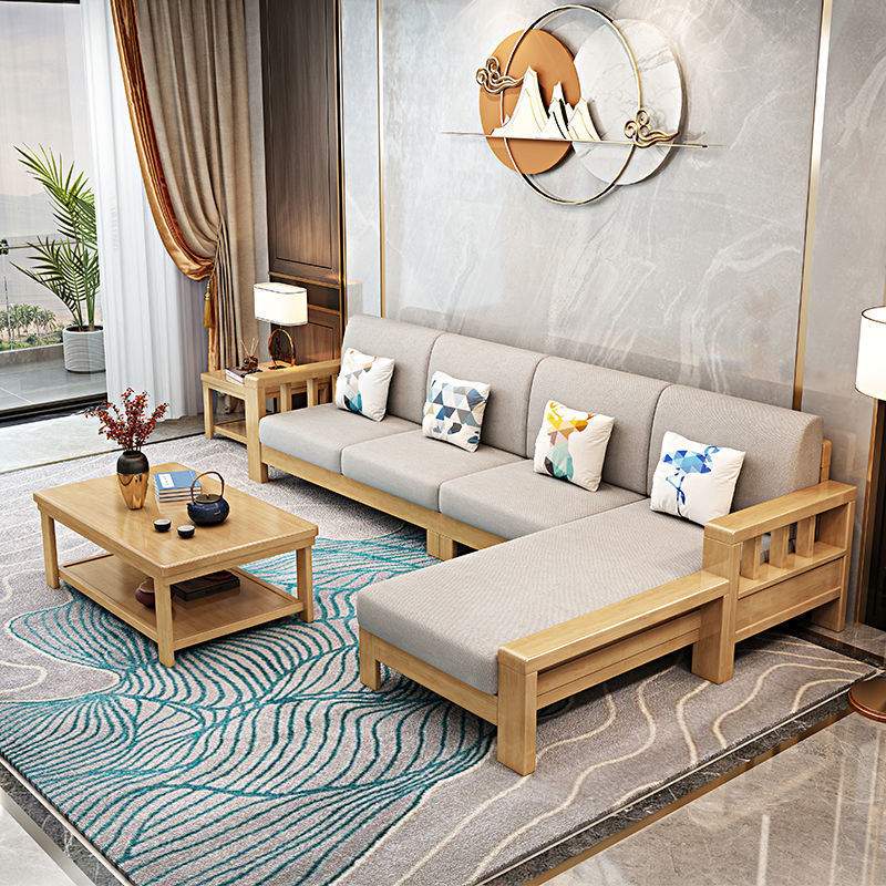 新中式现代实木沙发组合可拆洗冬夏两用转角布艺沙发客厅整装家具