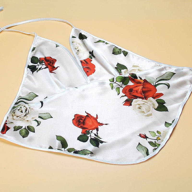 性感肚兜 100%桑蚕丝 V领印花真丝肚兜 女士内衣睡衣 裹肚成人