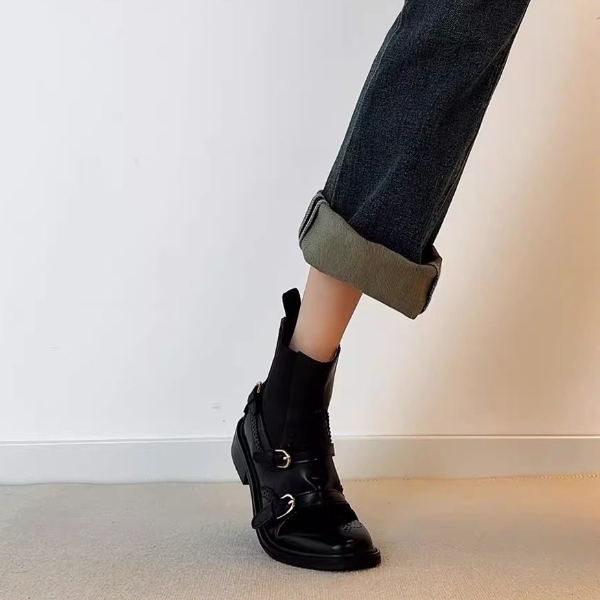 - 圆头短靴女 英伦